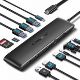 این هاب دارای ۱۲ پورت متنوع است که شامل دو پورت HDMI، یک VGA، سه USB 3.0، دو USB 2.0، یک USB-C با پشتیبانی از دیتا، یک USB-C با پشتیبانی از PD (Power Delivery)، کارتخوان SD/TF، و یک جک 3.5mm صوتی میباشد. پورتهای HDMI امکان انتقال تصویر با کیفیت 4K را فراهم میکنند، در حالی که پورت VGA برای نمایشگرهای قدیمی یا پروژکتورها بسیار کاربردی است. پورت USB-C PD تا توان 100 وات برای شارژ سریع لپتاپ یا دیگر دستگاهها استفاده میشود. پورتهای USB 3.0 با سرعت 5Gbps برای انتقال سریع دادهها طراحی شدهاند و کارتخوانها نیز با ظرفیت تا 2 ترابایت سازگار هستند.