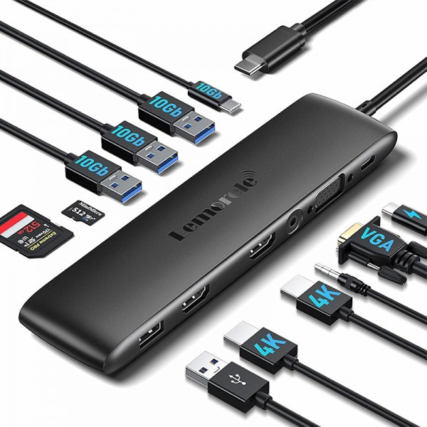 هاب Lemorele مدل TC97 یک داک حرفهای با ۱۲ پورت کاربردیه که برای کاربرهای لپتاپ، تبلت و حتی گوشی طراحی شده. این محصول با اتصال USB-C به دستگاه شما وصل میشه و امکانات متنوعی مثل خروجی تصویر 4K، پورت شبکه، کارتخوان، شارژ سریع و انتقال داده سریع رو در اختیار میذاره.